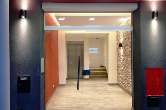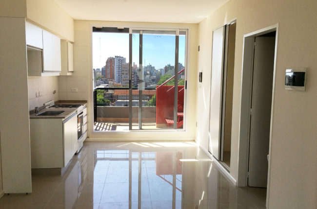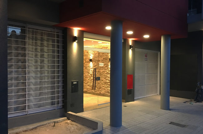 El emprendimiento se implantó en un terreno muy pequeño, de 9.30 x 13.10 mts, lo que obligó a diseñar un producto muy compacto y altamente eficiente, dada la economía de recursos. Al ser monoambientes chicos, se proyectó un núcleo que contuviese todos los servicios (ascensor, escalera, palieres, baños, y cocina), dejando sobre las medianeras liberado el espacio principal. Asi se logró mediante un patio trasero, que los ambientes principales tuviesen ventilación cruzada. Se complementa el diseño con un balcón de 2.00 x 2.00 aproximadamente.