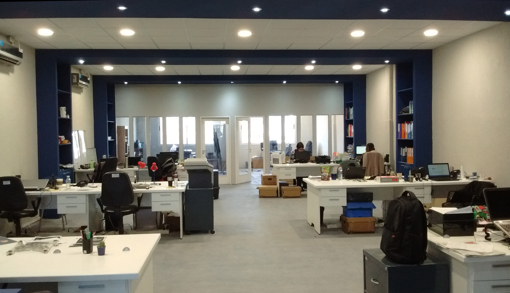 Los artefactos de iluminación LED junto al espacio abierto, dan una sensación de gran claridad pero con un muy bajo consumo eléctrico. Asimismo se han previsto las canalizaciones de datos con categoría 6, ya que la mayor parte de la gestión es digital, incuidos los teléfonos IP.