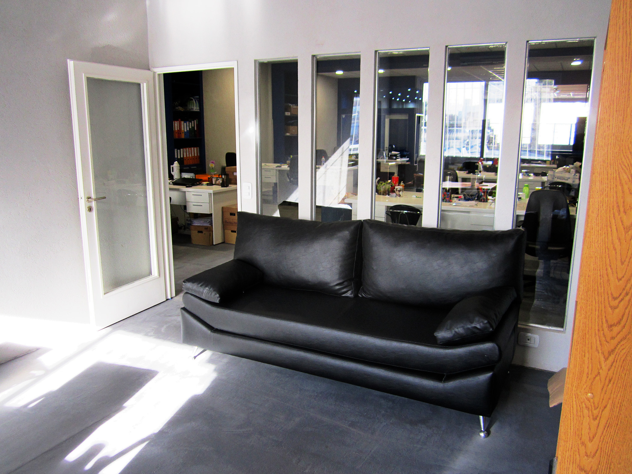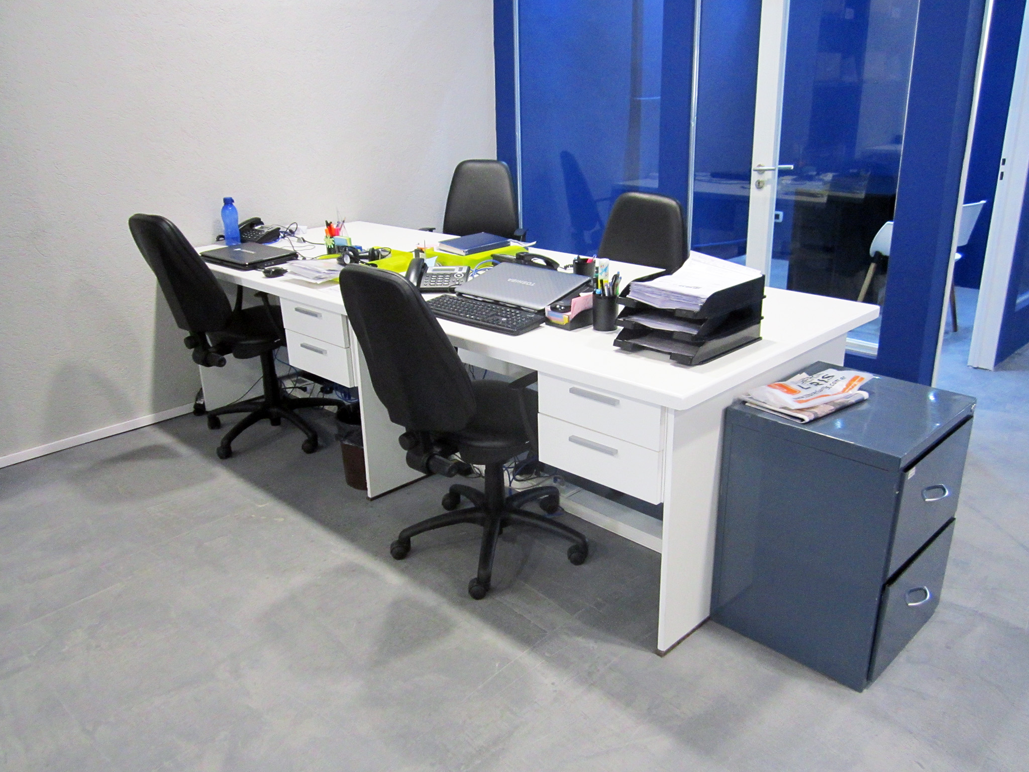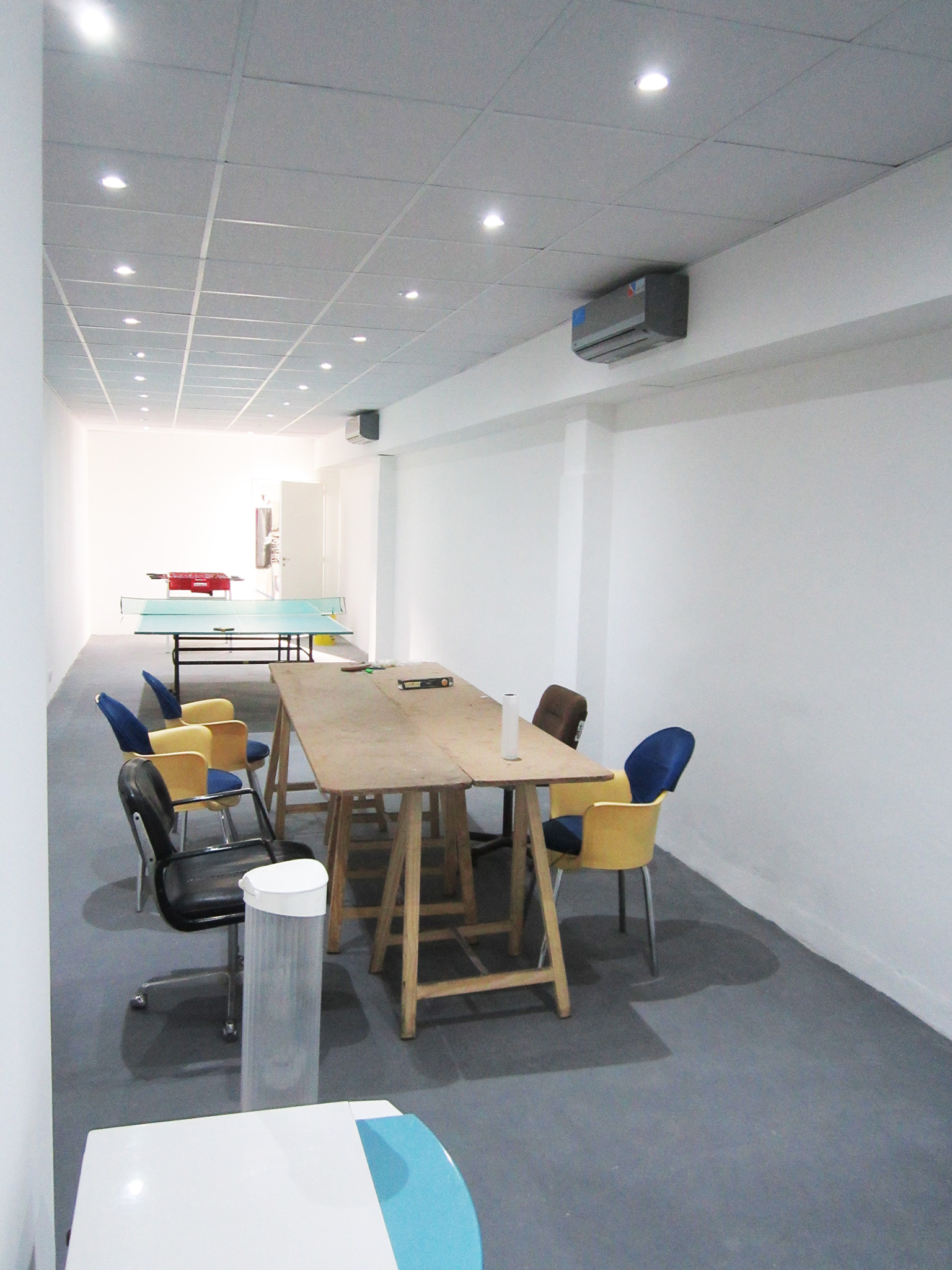 Así se formuló una especie de planta libre, donde el personal puede interactuar libremente según las necesidades eventuales. Se dispusieron los escritorios a ambos lados del espacio principal, y se ubicó la documentación (que no es mucha) en una especie de columnas que le dan ritmo al espacio.