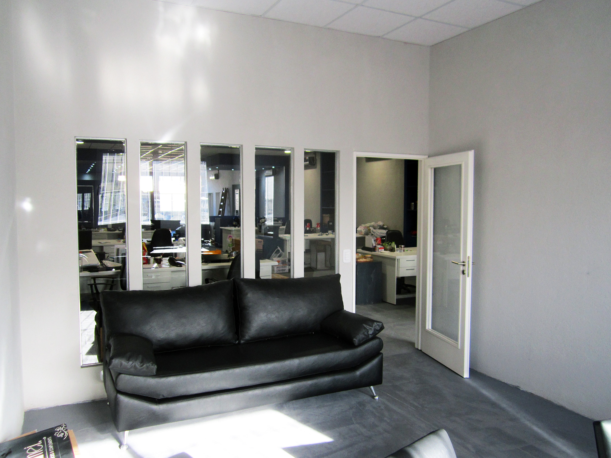 A partir de un depósito con techo parabólico de chapa en el primer piso, se proyectaron las oficinas comerciales, con 2 despachos principales, 2 salas de reunión, un área mas informal para algunas reuniones casuales,