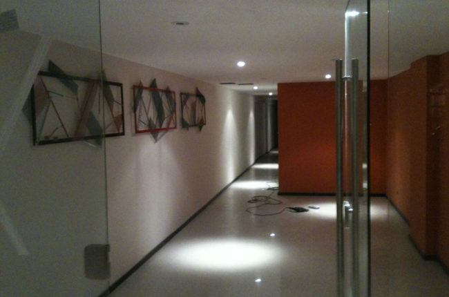 En la planta baja se ubicaron las 8 cocheras y las salas de servicios generales y de ascensor,
