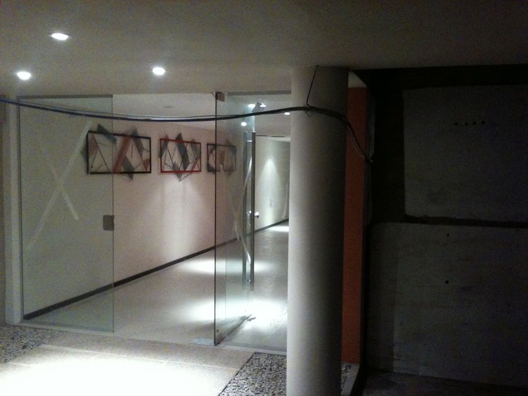 En la planta baja se ubicaron las 8 cocheras y las salas de servicios generales y de ascensor,