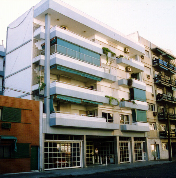 Es un edificio de PB y cuatro pisos. En él se desarrollan 4 departamentos por nivel, todos con buena calidad.