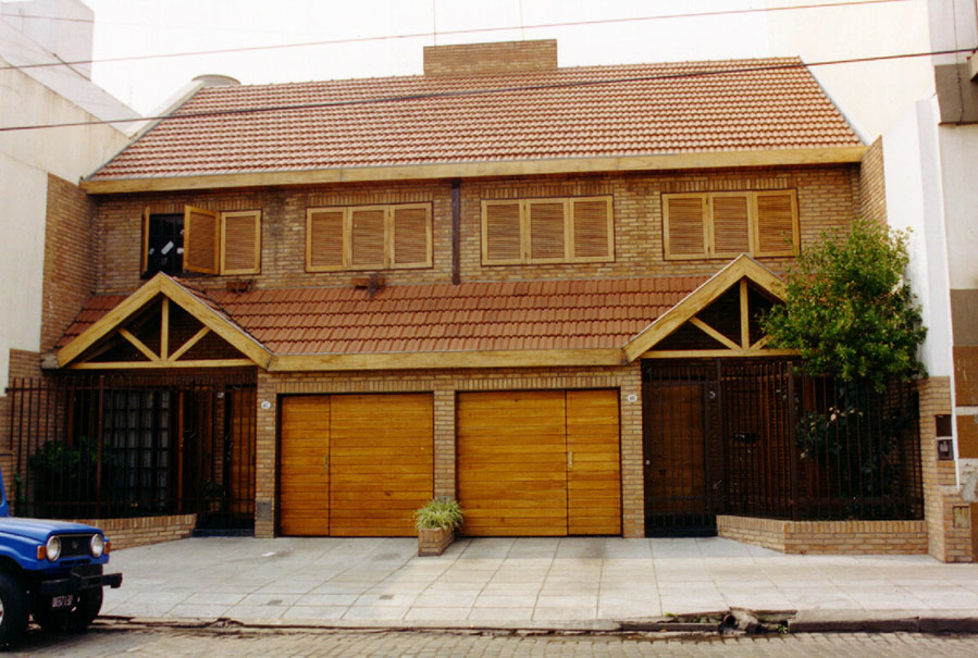 Las carpinterías metálicas están realizadas en chapa doblada, tanto los marcos como las hojas. Las carpinterías de madera son enchapadas y lustradas, mientras que las cortinas de enrollar son plásticas de color blanco. El agua caliente es provista por calefones de tiro balanceado. En planta baja se desarrolla en un espacio semicubierto las cocheras.